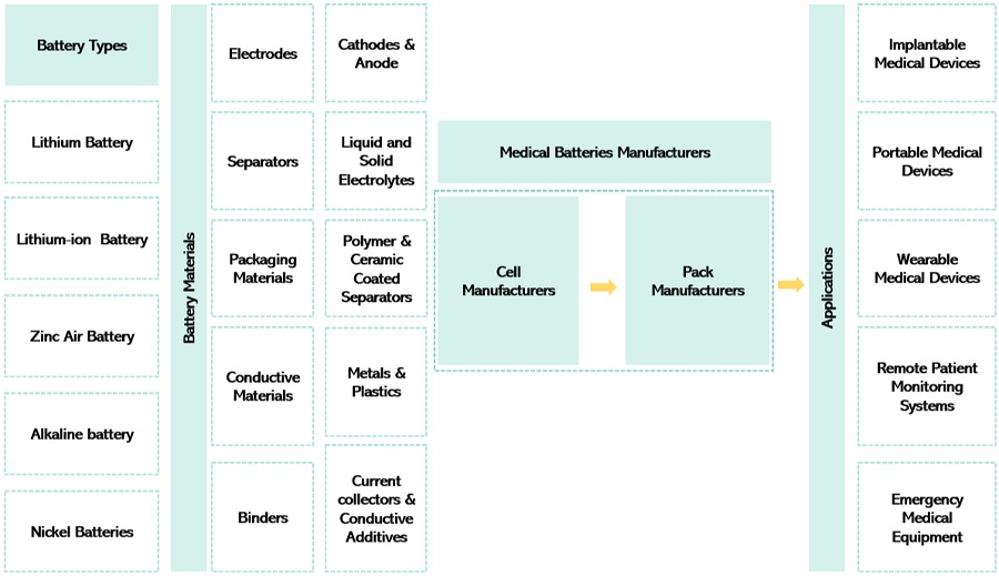 - Competitive Assessment: In-depth assessment of market shares, growth strategies, product offerings, and capabilities of the leading players in the Medical Batteries market like Panasonic Holdings Corporation (Japan), Maxell Ltd. (Japan), Murata Manufacturing, Ltd. (Japan), EnerSys (US), Energizer Holdings, Inc. (US), Arotech Corporation (US), Camelion Battery Co., Ltd. (China), Duracell Inc. (US), EaglePicher Technologies LLC (US), Guangzhou Battsys Co., Ltd. (China), Renata SA(Switzerland), Saft (France), Tadiran Batteries Ltd. (Israel), Toshiba Corporation (Japan), Ultralife Corporation (US), Varta AG (Germany), Videndum Plc (UK).