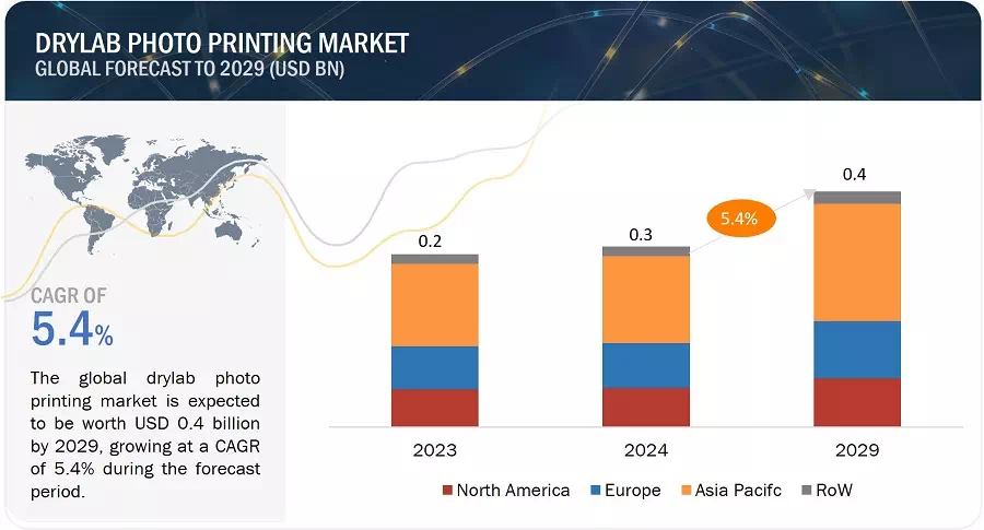The drylab photo printing market is expected to reach USD 0.4 billion by 2029 from 0.3 billion in 2024, at a CAGR of 5.4% during the 2024-2029 period. The increasing demand for personalized gifts has significantly contributed to the growth of the drylab photo printing market. Consumers today seek unique and customized items, and this trend has extended to gift-giving. Personalized gifts, such as custom-printed photo products, allow individuals to add a personal touch to their presents, making them more meaningful and memorable.