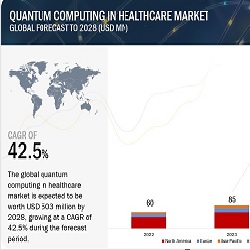 The global quantum computing in healthcare market is projected to reach USD 503 million by 2028 from USD 85 million in 2023, at a high CAGR of 42.5% during the forecast period.